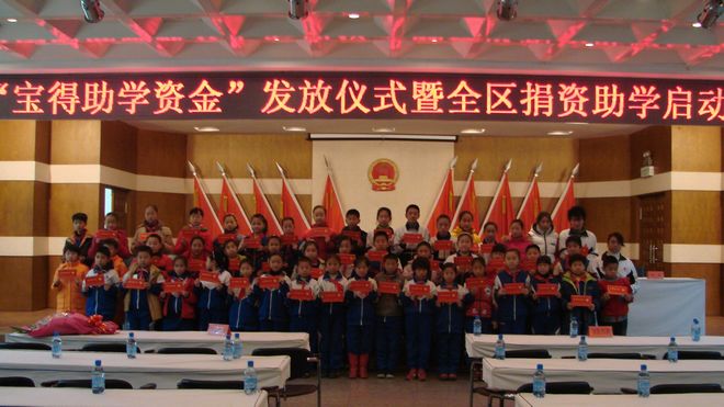 "宝得助学金":2006年至今,已连续四年每年捐资100万元,在全区范围内资助2000名享受低保家庭的贫困学生,每人500元。