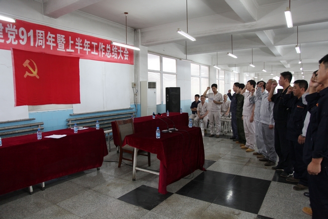 6月29日,公司召开纪念建党91周年暨上半年工作总结大会,总公司党委书记、总经理张铁汉做一年来党建工作总结暨上半年工作总结。会上,10名新党员在党旗下庄严宣誓加入中国共产党。