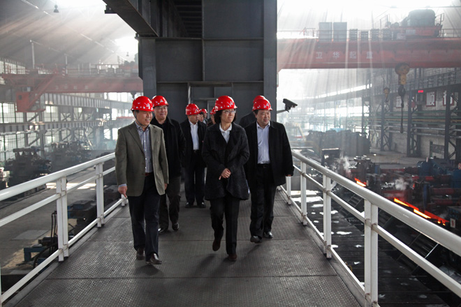 2月27日鞍山市副市长、代理市长吴忠琼到公司视察,总经理张铁汉陪同并介绍企业生产情况。