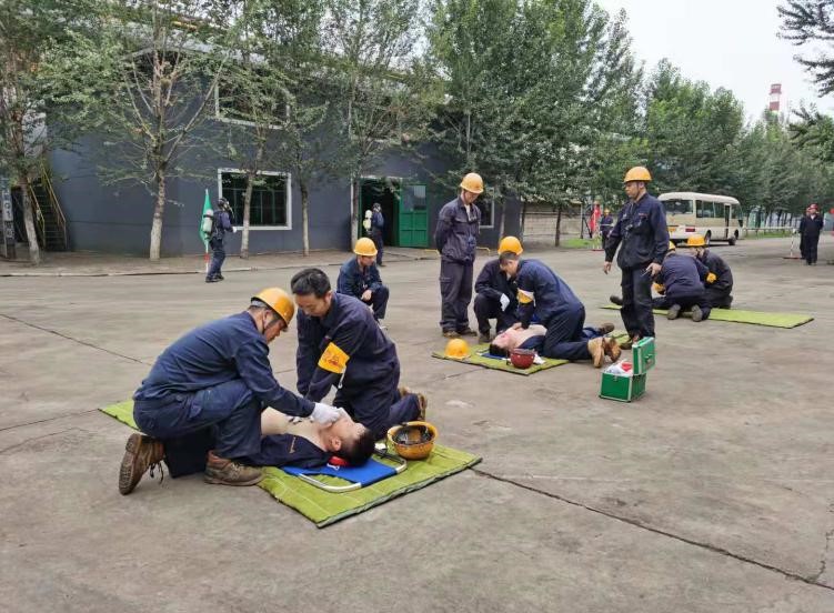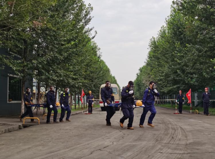 “报告马厂长:我是当班维护班长曹雷,9点35分左右班内三名员工在煤气阀组平台巡检过程中发生煤气中毒事故,请求立即支援”……;“请抢险救援组、安全警戒组、医疗救护组…立即赶赴事故现场集结”;“报告总指挥:抢险救援组10人到达现场,6套呼吸器及3副担架救援装备完好,可正常使用”……;“各救援小组按预案规定程序及商定的实施方案,立即展开救援行动”……;“报告总指挥:三名伤者已成功救出,两人中毒较重,一人较轻,……”;“报告总指挥:煤气泄漏部位抢修完毕,已无泄漏现象,设备可正常运行”……。随着一条条救援指令的下达,现场警戒、现场救援、伤员急救、设备抢修、现场清理及组织生产恢复等过程紧张、有序地完成,实战演练圆满结束。
