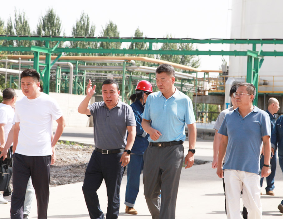 2023年7月5日鞍山市应急局局长李志鸿(右三)、经开区党工委委员、管委会副主任王昕(左二)、经开区应急办主任方毅(左三)等市、区政府各级领导莅临宝得公司走访调研,总经理张铁汉(右一)、常务副总经理张维达等主要领导陪同。