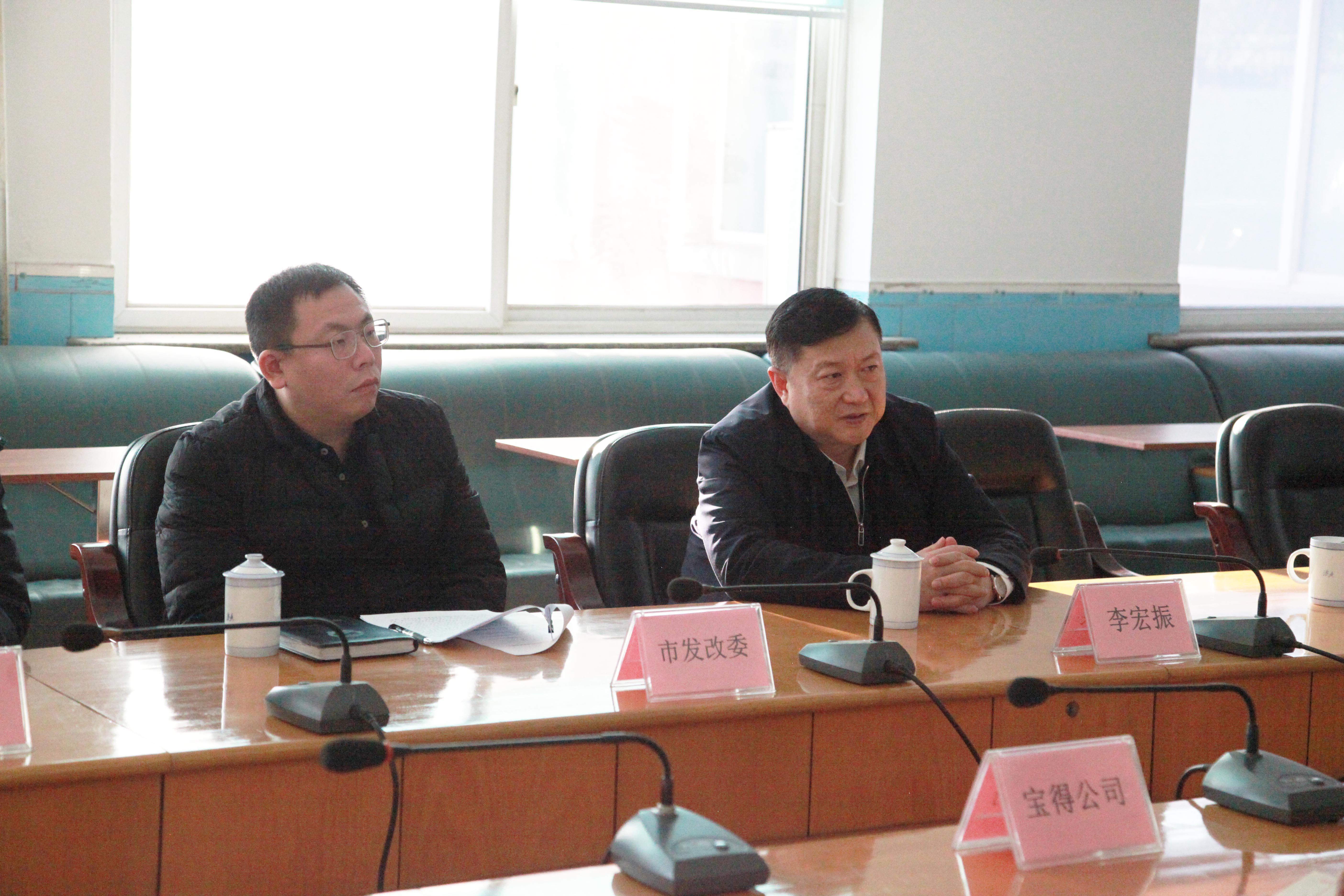 1月3日,鞍山市常务副市长李宏振,经开区副主任李舒等市、区政府领导莅临宝得公司走访调研,公司总经理张铁汉、党委书记马振广等主要领导陪同。